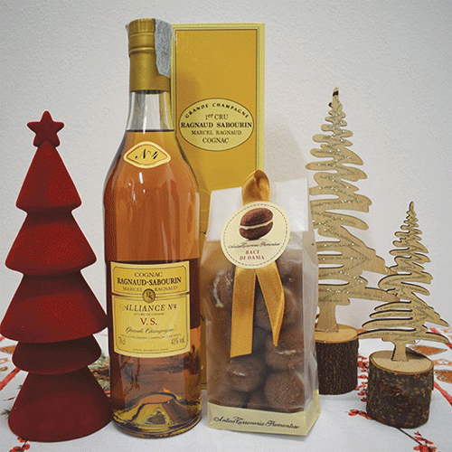 Strenna natalizia contenente: Cognac e pasticcini baci di dama